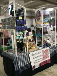 Snapshots of my setup at a few recent cons! Most recent tables are to the left and older tables are to the right.