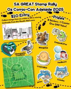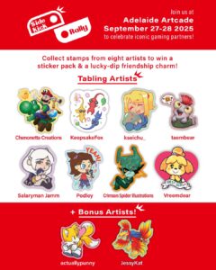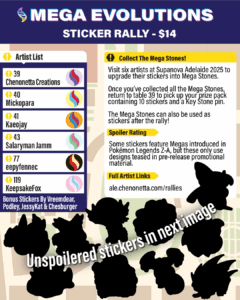 I love bringing unique stamp rallies to events that I table at! So far I have run four stamp rallies – one with a South Australia theme, a Side Order (Splatoon) stamp rally, a Nintendo Sidekicks rally and a Mega Evolutions rally.